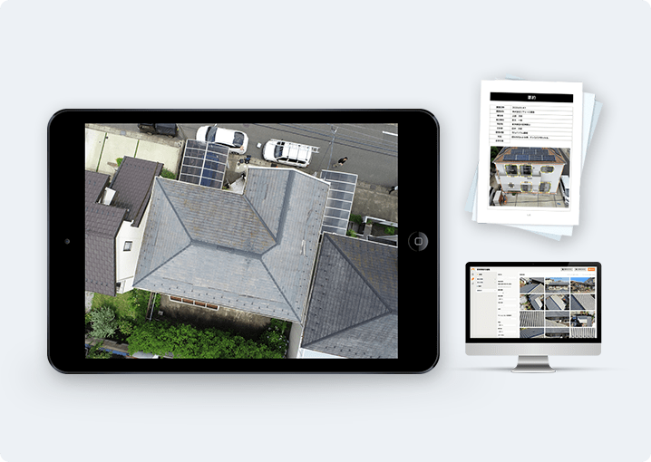 ☑ 太陽光パネルや雨樋、高所部分の外壁などの損傷も、その場で目視できる